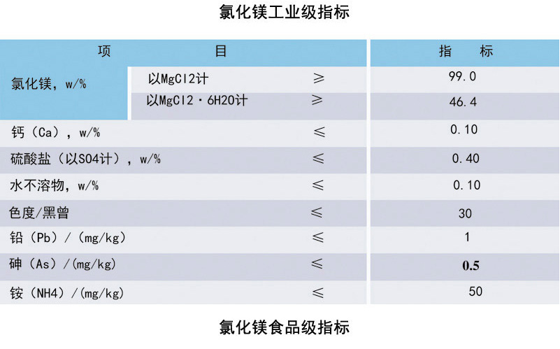 (1)按照含量分類:六水氯化鎂≥46%    無(wú)水氯化鎂≥99%